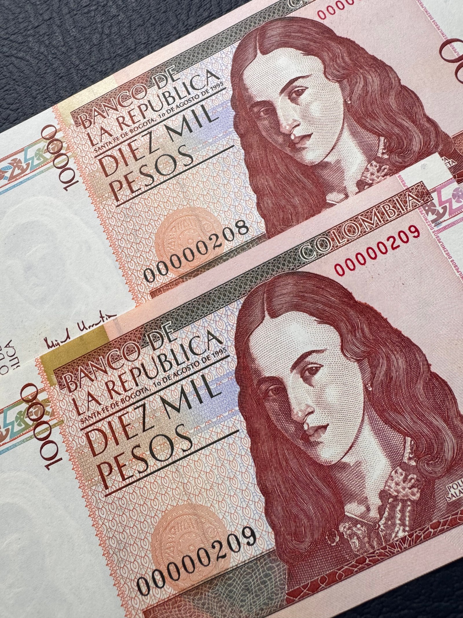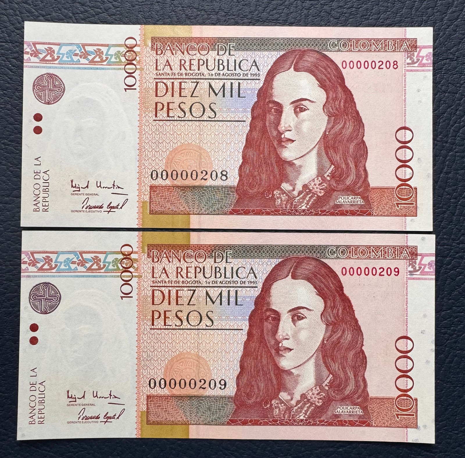 10.000 PESOS (SERIE BAJA TRES DIGITOS, PRIMER AÑO; TERCERA FECHA DE EMISIÓN) 1995