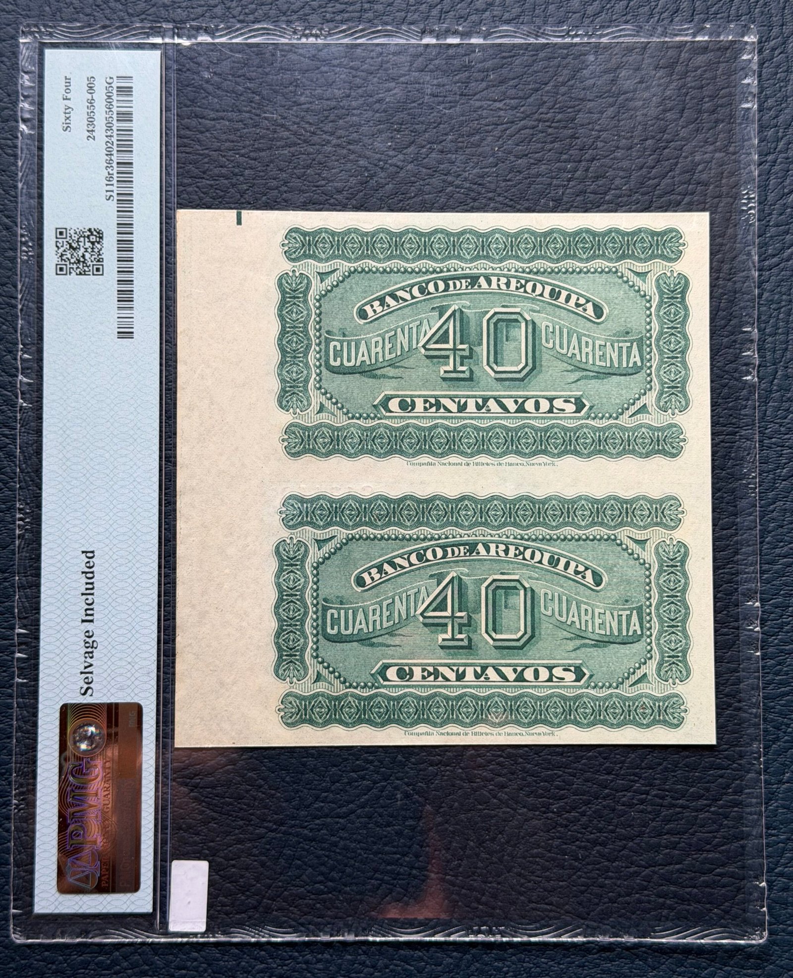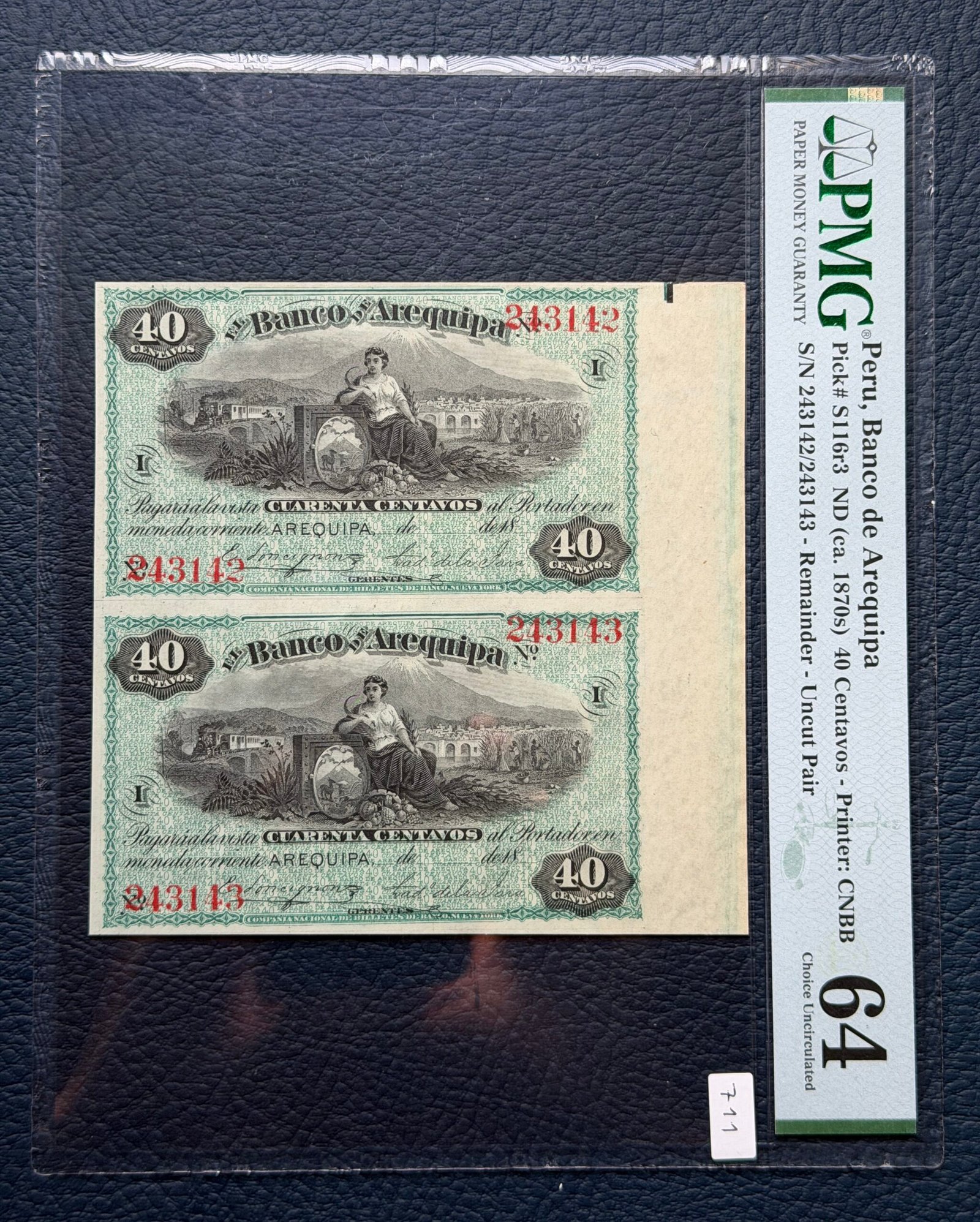 40 Centavos, Perú; Banco de Arequipa, Pareja consecutiva sin cortar.