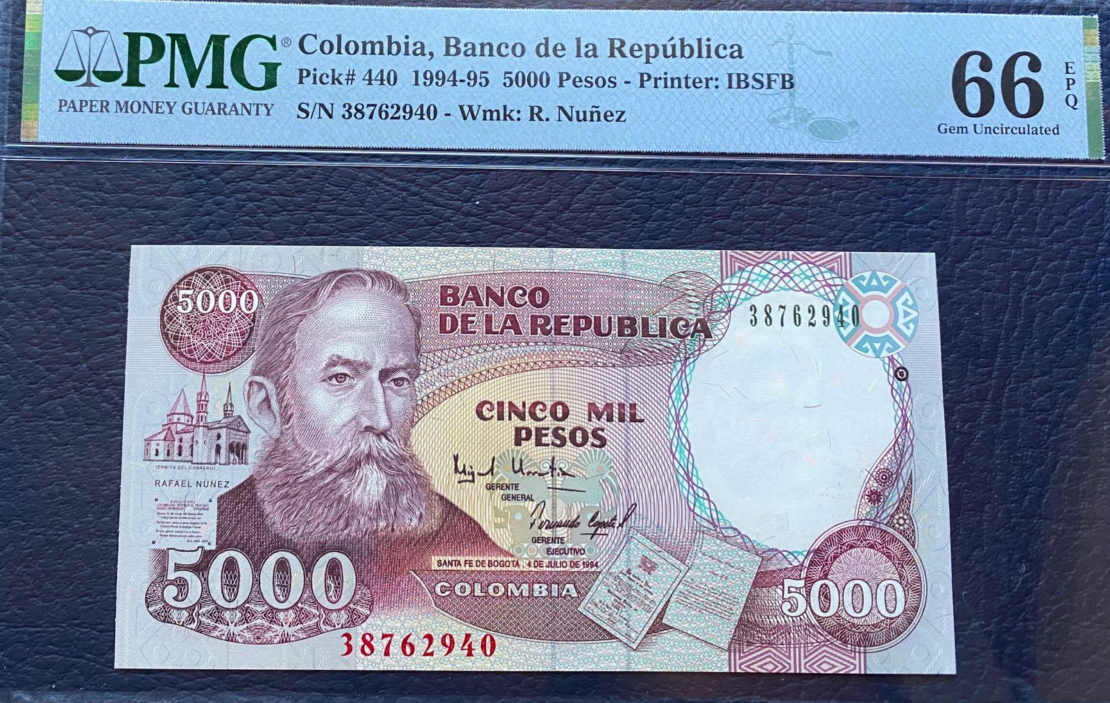 RAFAEL NÚÑEZ, 5.000 PESOS 1994. (CERTIFICADO) cantidad